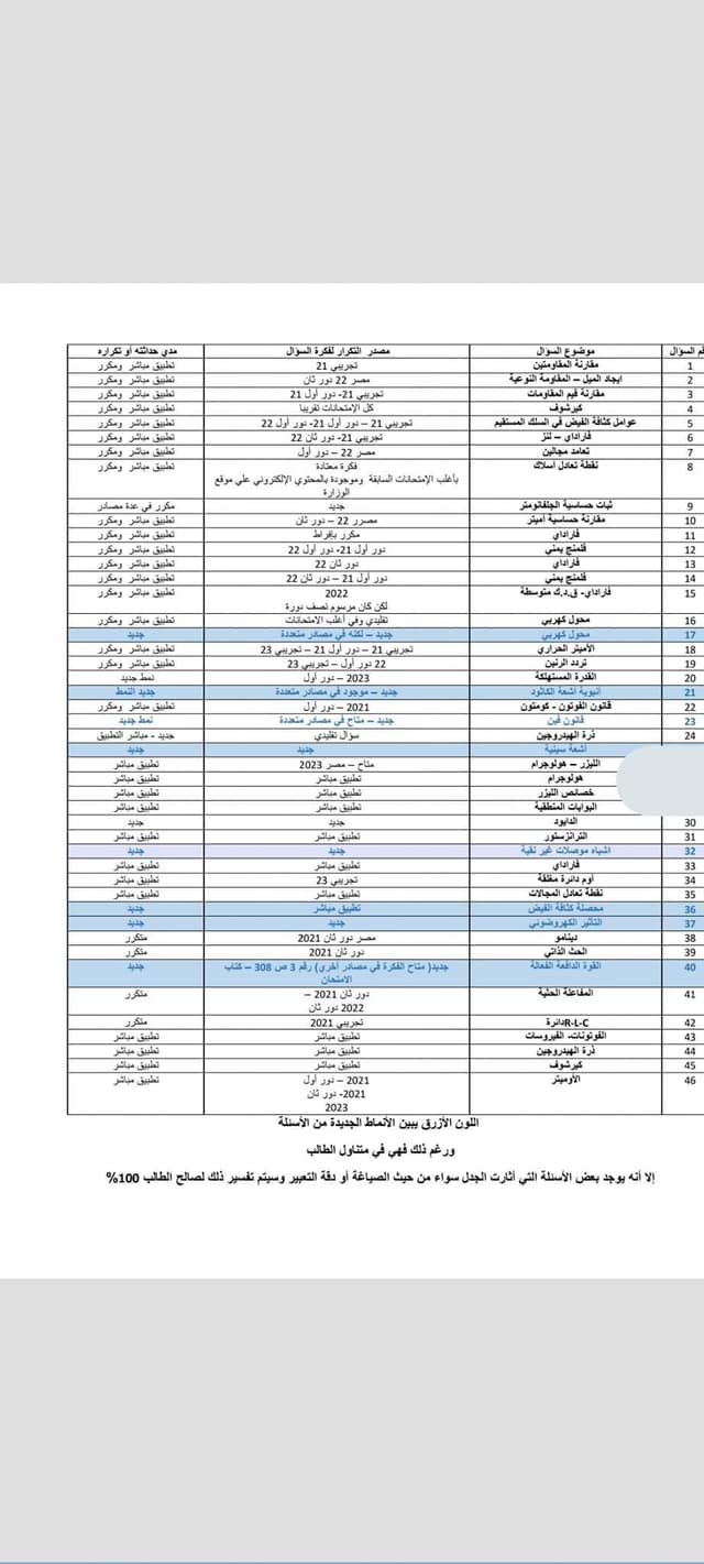 بناء على تقرير اللجنة الفنية حول امتحان مادة الفيزياء ..