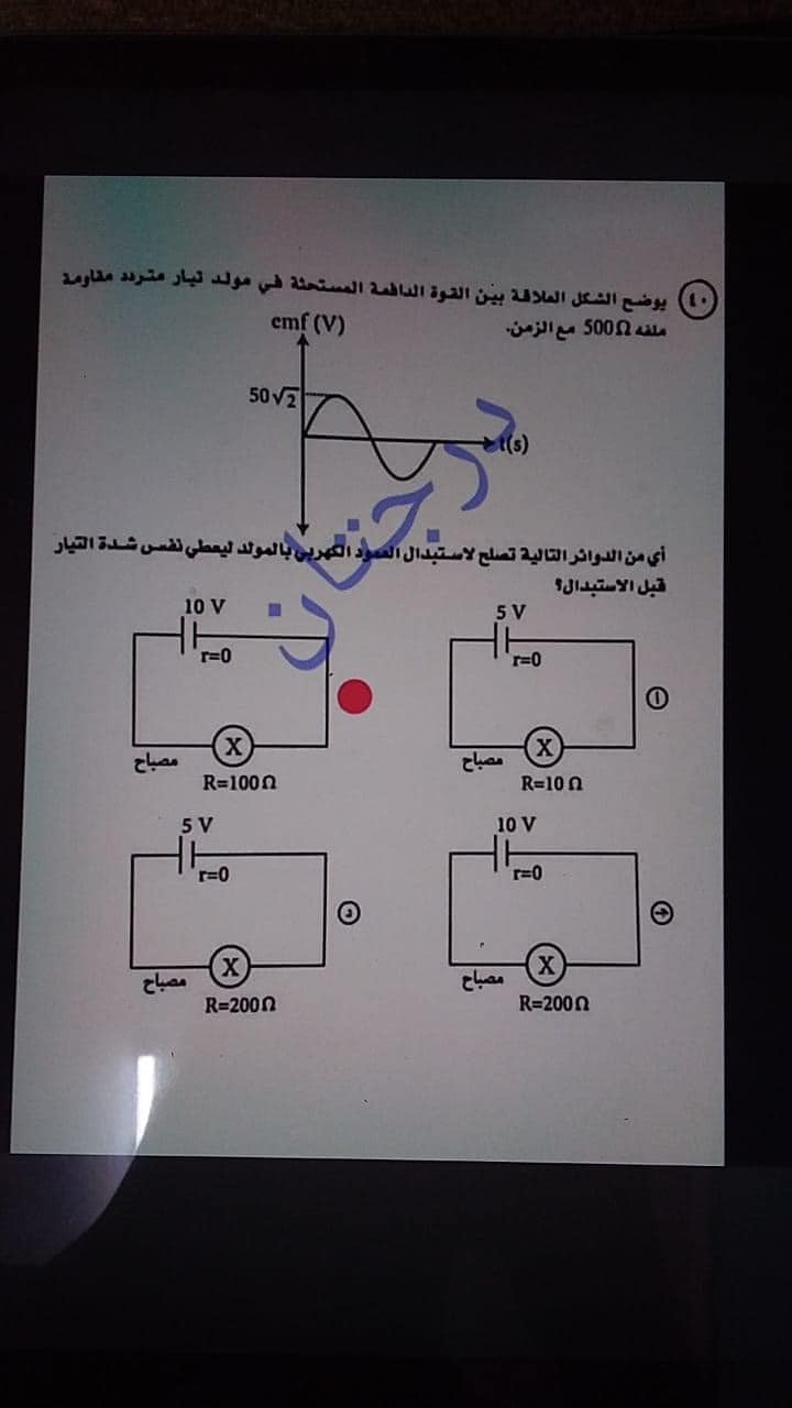 نموذج اجابة امتحان الفيزياء 2024 pdf والاسئلة التي تم توزيع درجاتها